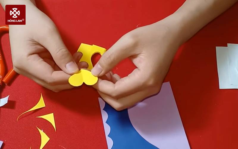 Bước 4: Dùng giấy màu vàng để cắt thành nhiều hình trái tim (kích thước khác nhau).