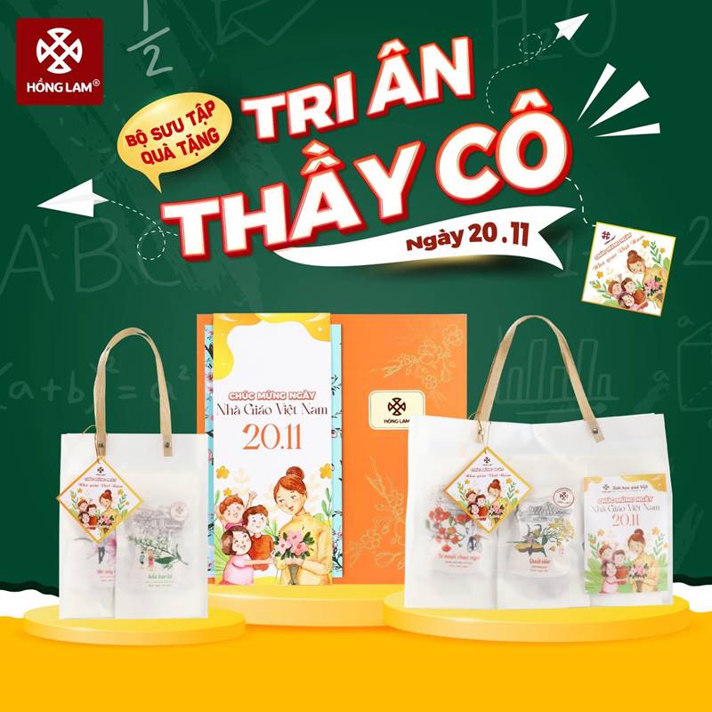 Bộ sưu tập Quà tặng Tri ân thầy cô nhân ngày 20/11 mang nét thiết kế sang trọng, lịch sự, tinh tế, bên trong là sự kết hợp đa dạng những hương vị ô mai, trà truyền thống Hồng Lam. Bên cạnh đó là ấn phẩm tag, đai và thiệp thiết kế dành riêng cho ngày Nhà giáo Việt Nam. Đây hứa hẹn sẽ là Bộ sưu tập quà tặng 20/11 cao cấp được nhiều khách hàng mọi lứa tuổi săn đón, lựa chọn để gửi gắm lời chúc, lòng biết ơn đến thầy cô - những người lái đò thầm lặng đưa những thế hệ học trò đến bến bờ tri thức.
