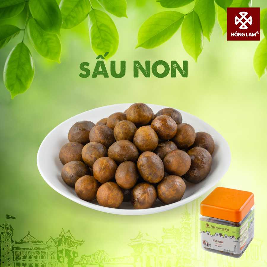 Ai chưa một lần thưởng thức sấu non Hồng Lam thì nhất định phải thử. Cái vị chua ngọt ngấm vào vị giác, cái vị ngon giòn tan khiến ta không thể quên được. Thơm ngon khó cưỡng.