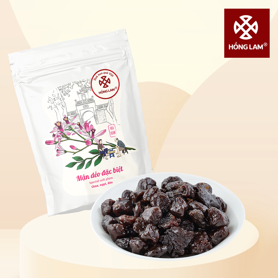 Nằm trong bộ sưu tập mơ số, Mơ Hồng Lam 5 là sản phẩm riêng biệt chỉ có ở Hồng Lam. Từng quả ô mai dẻo dai, quấn quyện ngọt ngào cùng những gia vị truyền thống khiến Mơ Hồng Lam 5 luôn nằm trong top sản phẩm được nhiều khách hàng ưa thích nhất tại Hồng Lam.