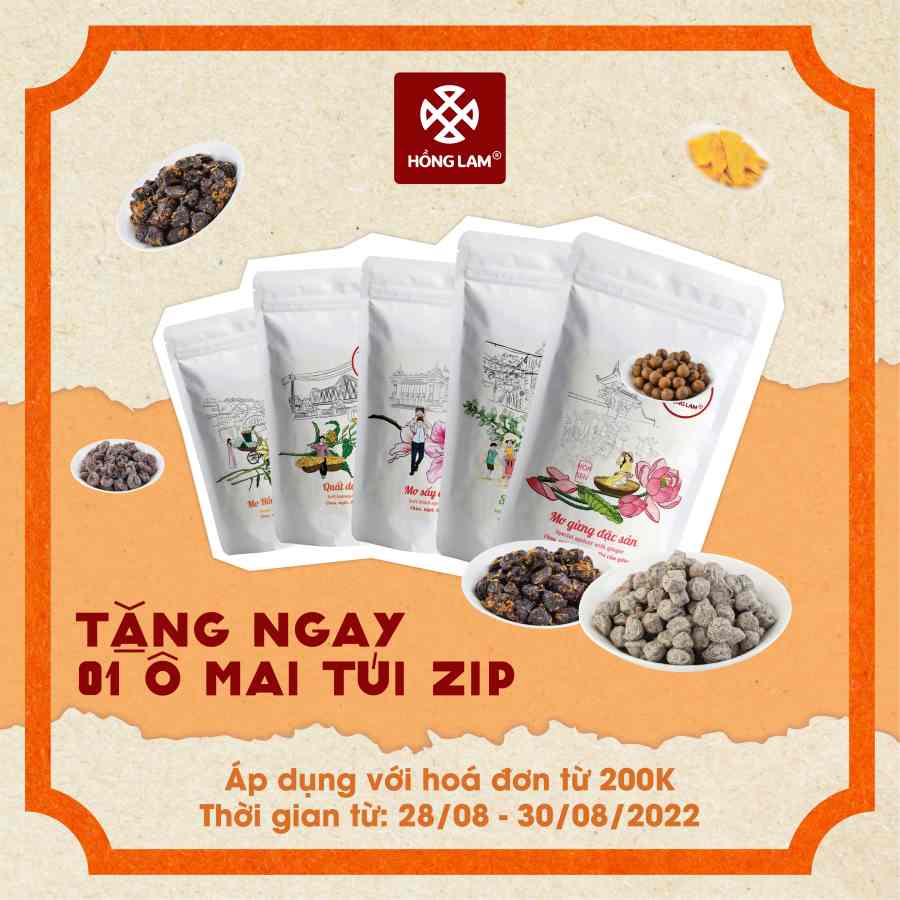 Đặc biệt, 500 khách hàng đầu tiên đến mua hàng sẽ được TẶNG NGAY 1 ô mai túi zip cho hoá đơn từ 200K trở lên trong 3 ngày từ 28/08 - 30/08/2022 (áp dụng với hoá đơn sau khi trừ chiết khấu khuyến mãi 100%)