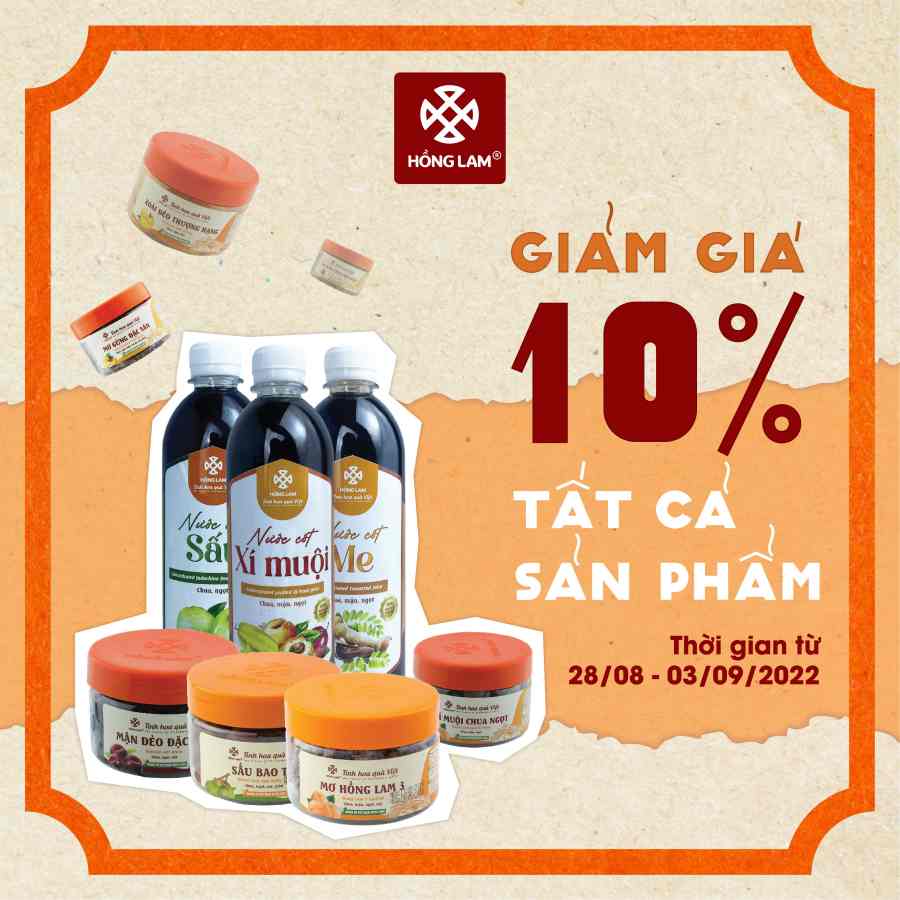 - Thời gian: 28/08 - 03/09/2022 duy nhất cho khách hàng đến mua trực tiếp tại CH Hồng Lam 263B Lê Quang Định, Phường 7, Q. Bình Thạnh, TP.HCM